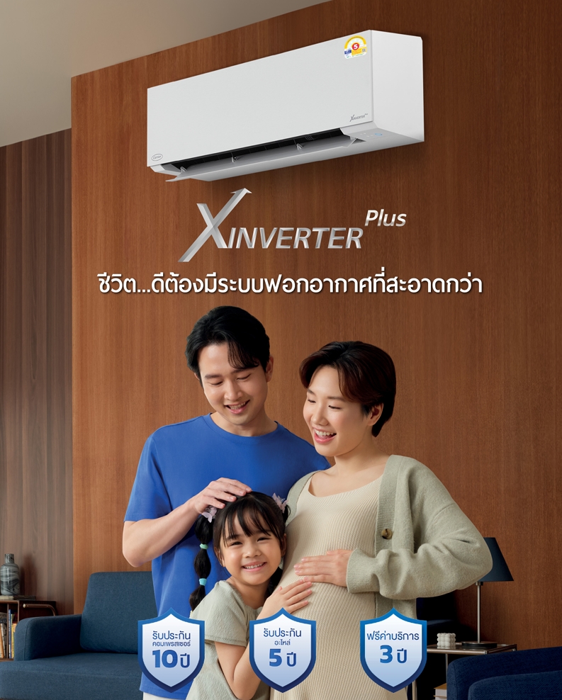 แอร์แคเรียร์ ติดผนังรุ่น XInverter Plus รับประกันคอมเพรสเซอร์ 10 ปี อะไหล่ 5 ปี