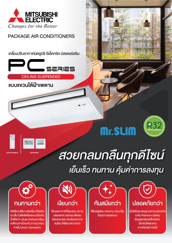 Mitsubishi Ceiling PC-MSeries แอร์แขวนจากมิตซูบิชิที่การันตีว่าเสียงเงียบสนิท ทำงานได้อย่างต่อเนื่อง รูปลักษณ์ดีไซน์หรูดูดี คุณภาพสูง และประหยัดพลังงานได้อย่างยอดเยี่ยม
